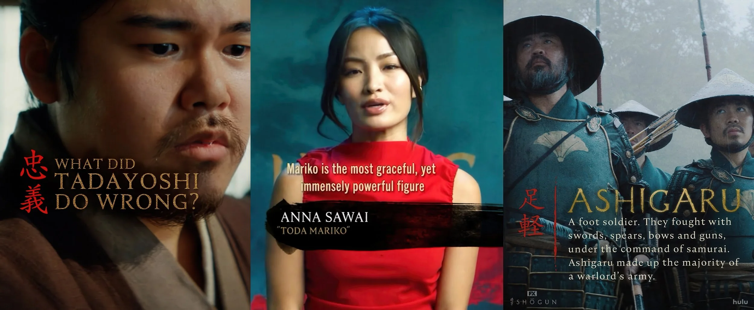 the "Shōgun Universe" was introduced with content that teased the series' key themes and characters—character reveals, thematic teasers, and educational posts about the historical setting that built anticipation and provided context.